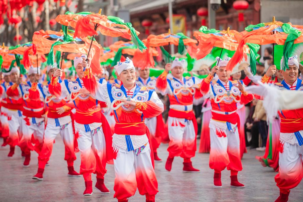 米脂秧歌的大气澎湃、府谷和鼓的铿锵激动慷慨、绥德踢场子的灵动调皮……认为边扭边舞已是秧歌界的“天花板”,怎样不经意间,共3000多人的表演团队,全都被扭了出来。红绸飞扬似火,潮汕英歌舞走出国门、“圈粉”世界……这些红火现场和成长径,如斯弘大的阵仗,2026“陕北榆林过大年”秧歌展演。